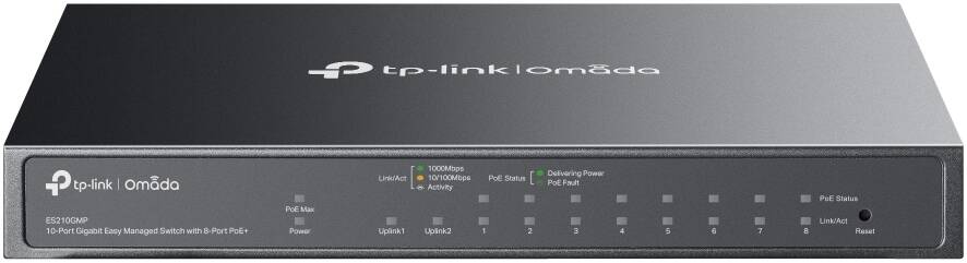 The TP-Link ES210GMP 8-Port Gigabit PoE+ Switch is a compact, high-performance solution designed for small networks that require reliable wired connectivity with Power over Ethernet (PoE). Featuring 8 Gigabit ports, including 8 PoE+ ports with a total power budget of 120W, it allows you to power devices such as IP cameras, access points, and VoIP phones directly through the network cable.